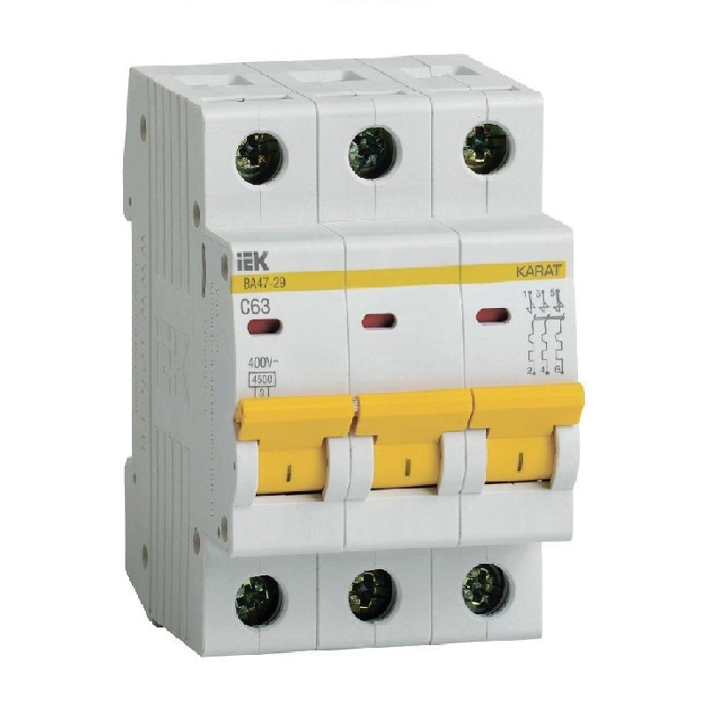 Автоматический выключатель IEK Karat ВА 47-29 4,5кА, С 63А, 3П, MVA20-3-063-C