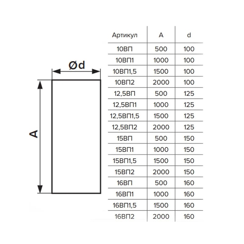 Канал (воздуховод) круглый Era 15ВП1, d=150 мм (1 м), пластик