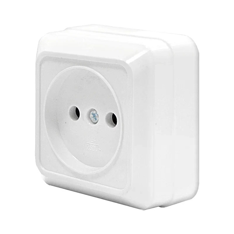 Розетка одноместная без заземления открытой установки серии ОЛИМП — Олимп О0022, 1 гнездо, белая предназначена для установки в помещениях с открытой проводкой (ремонт, складские и подсобные помещения, временные коммуникации, нежилые помещения и места, где заземление не требуется). Подходит для быстрой замены и монтажа в бытовых и коммерческих сетях переменного тока.
