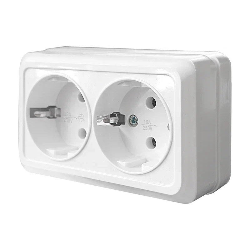 Розетка двухместная с заземлением открытой установки серии Олимп предназначена для установки в помещениях с открытой проводкой (ремонт, складские и подсобные помещения, временные коммуникации, нежилые помещения. Подходит для быстрой замены и монтажа в бытовых и коммерческих сетях переменного тока.