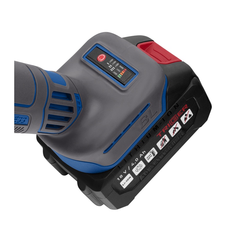 Trigger 20123 – бесщеточная угловая шлифовальная машина с единой аккумуляторной платформой. Благодаря многоступенчатой электронной регулировке частоты вращения УШМ используется как для резки, так и для зачистных или шлифовальных работ. Корпус выполнен из нейлона, редуктор - из алюминиевого сплава.