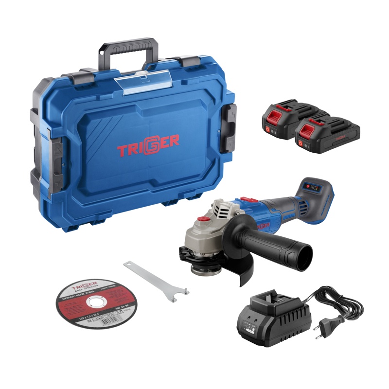 Шлифмашина угловая УШМ аккумуляторная Trigger 20123 ЕАП 18В, Li-ion d=125мм, 2х4Ач, кейс, бесщеточная