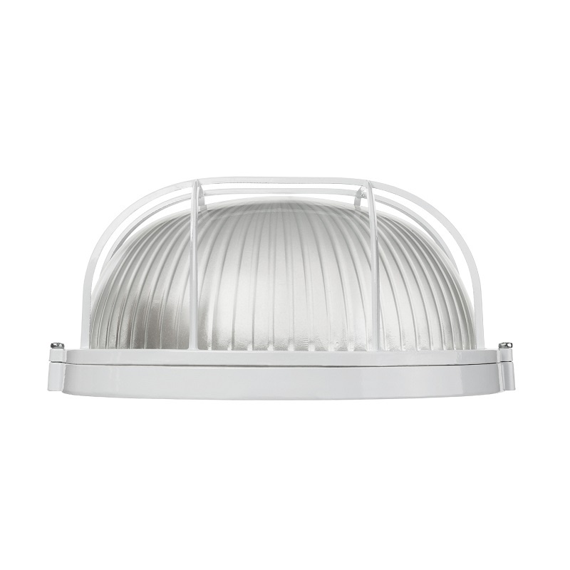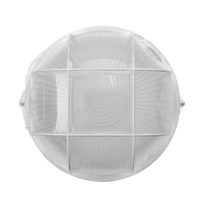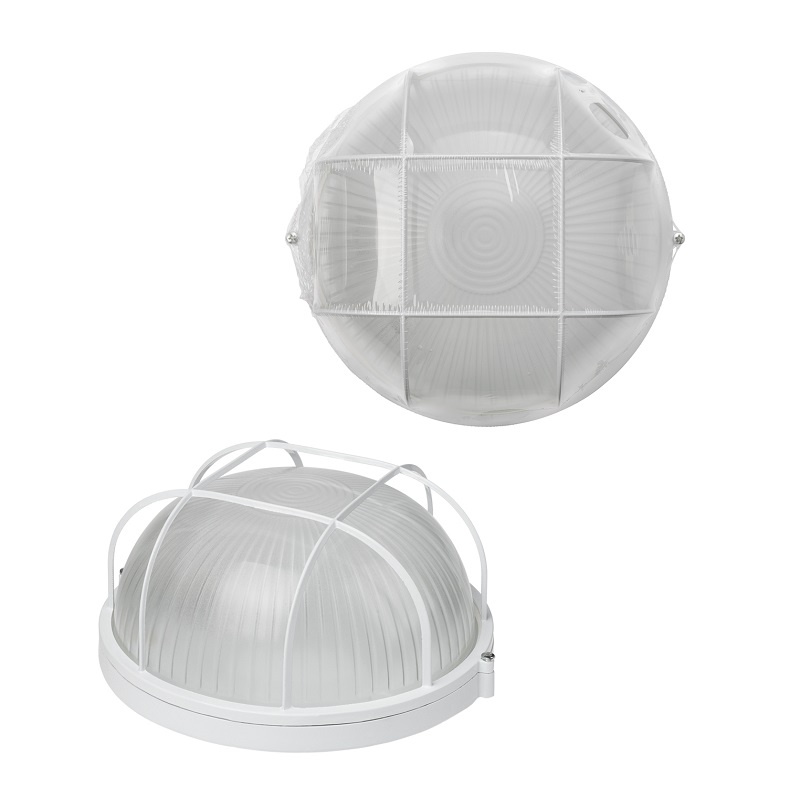 Светильник НПБ под Е27, 100 Вт, круг с решеткой, белый металл+стекло, IP54