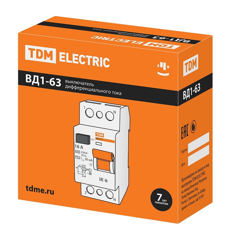 Устройство защитного отключения TDM ВД1-63, 32А, 30мА, тип АС, 2П