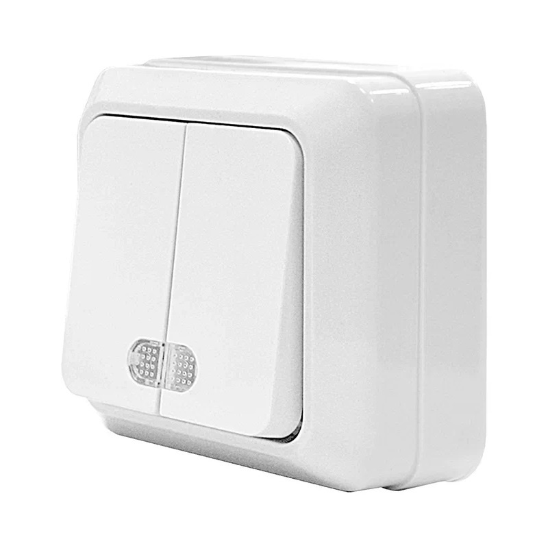 Выключатель о/у Олимп О0123, 2 клавиши, с/инд, IP20, белый